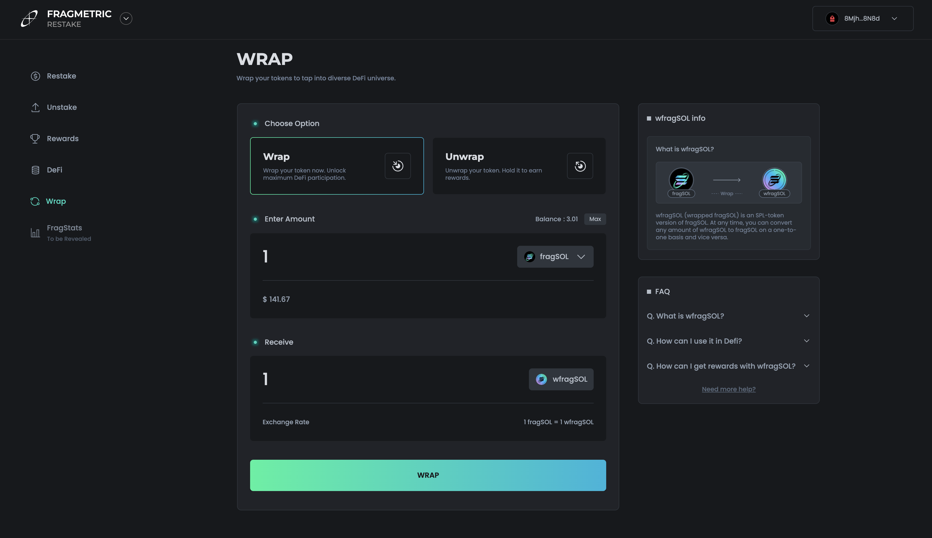 Head to https://app.fragmetric.xyz/wrap/fragsol/
